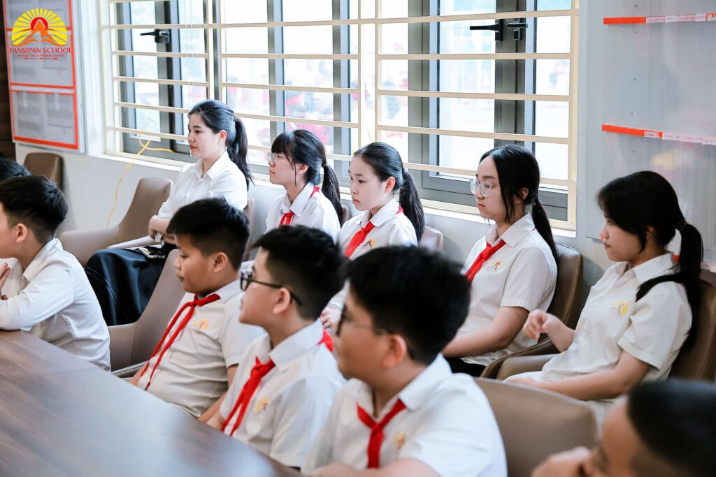 Không phải một buổi họp trang trọng, mà là cuộc gặp gỡ giản dị, thân tình giữa nhà báo Lê Xuân Sơn – Chủ tịch Hội đồng trường, lãnh đạo công ty, Ban Giám hiệu cùng các đội tuyển HSG lớp 5, lớp 8 và thầy cô lãnh đội.