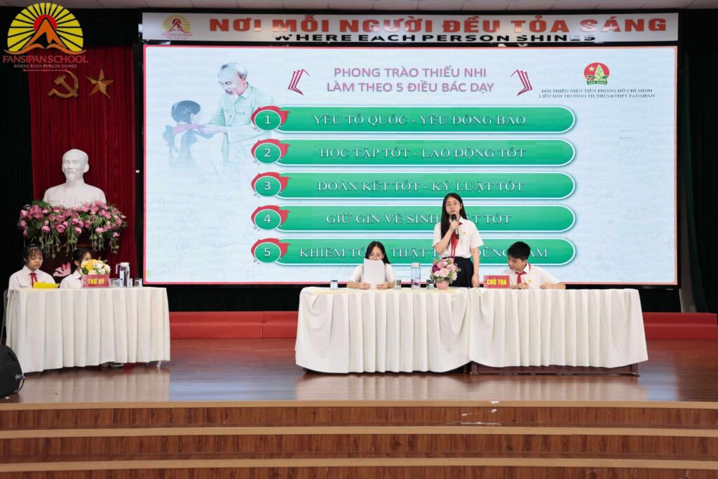 Sáng ngày 25/10/2025, Liên đội Trường Liên cấp Fansipan đã long trọng tổ chức Đại hội Liên đội năm học 2025 – 2026 với sự tham gia của hơn 60 đội viên tiêu biểu đại diện cho các chi đội trong toàn trường, cùng sự hiện diện của Ban Giám hiệu và các anh chị phụ trách.