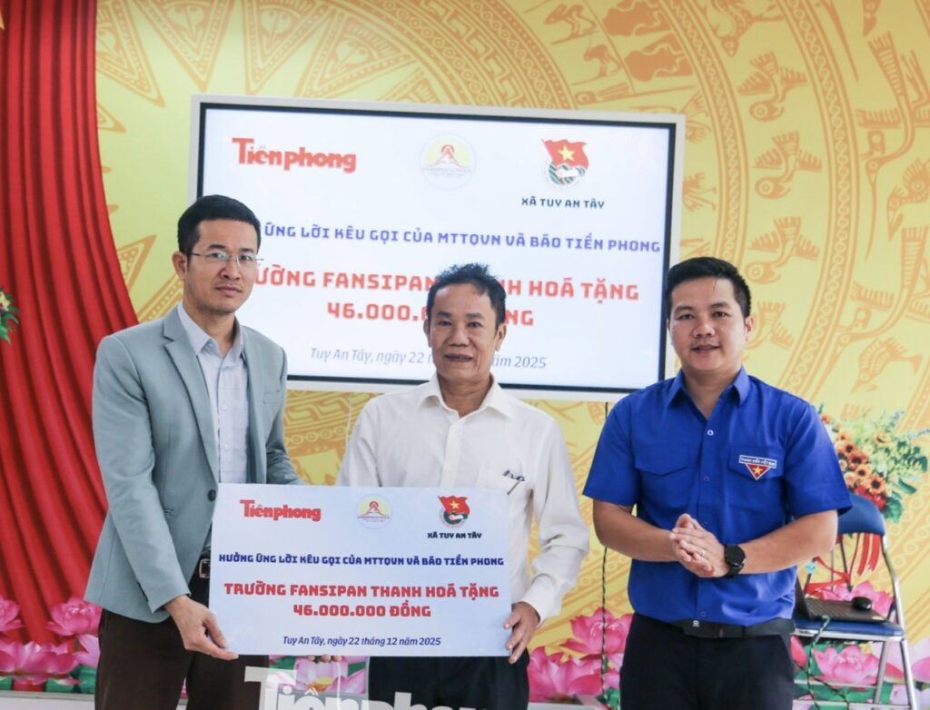 Sáng 22/12, Báo Tiền Phong phối hợp với Tỉnh Đoàn Đắk Lắk tổ chức chương trình trao quà hỗ trợ các trường học bị thiệt hại nặng trong trong cơn bão Kalmaegi vừa qua đã chuyển số tiền ủng hộ 86 triệu đồng do Trường TH, THCS & THPT Fansipan quyên góp cho hai trường: Trường Tiểu học & Trung học Cơ sở An Xuân (40 triệu đồng), Trường Tiểu học & Trung học Cơ sở Nguyễn Hoa (46 triệu đồng).