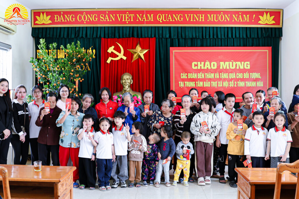 Chương trình do Nhà báo Lê Xuân Sơn – Chủ tịch Hội đồng Trường làm Trưởng đoàn, với sự tham gia của Ban Giám hiệu, các thầy cô giáo, quý phụ huynh cùng các em học sinh Fansipan. Đây không chỉ là hoạt động thường niên mỗi dịp lễ Tết, mà đã trở thành một truyền thống đẹp, nơi những bài học về yêu thương, biết ơn và sẻ chia được trao đi bằng cả tấm lòng.